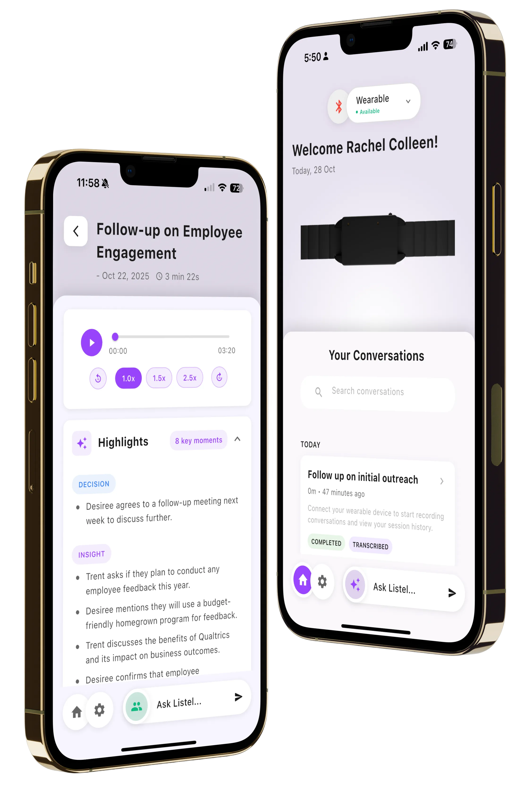 Listel is a wearable capture layer for in-person sales conversations — turning real conversations into structured, CRM-ready insight.
